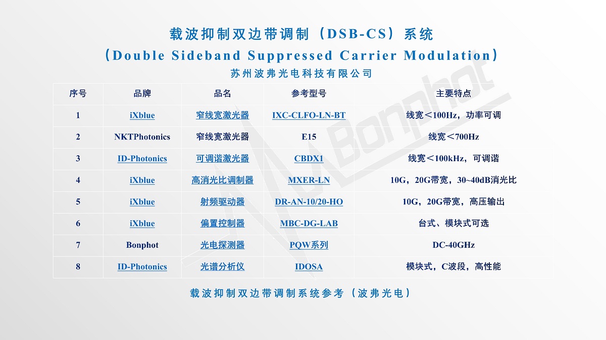 苏州CA888亚洲城光电科技有限公司提供完整的载波抑制双边带应用/双边带抑制载波传输(DSB-SC:Double Sideband Suppressed Carrier Modulation)系统及相关产品。