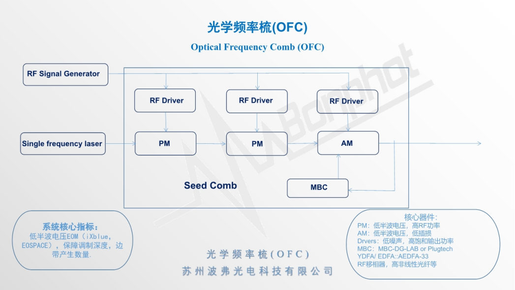 苏州CA888亚洲城光电科技有限公司深耕于光电通信、光纤传感等领域数十年,在光学频率梳等应用上非常专业,我们可根据用户的实际需求提供完整的系统,从射频元器件,到光学元件,提供理论和实践支持。基于目前的器件限制,我们可以为用户提供在1060nm波段、1550nm波段光学频率梳应用完善的系统支持,更多光学频率梳应用请联系苏州CA888亚洲城光电科技有限公司相关销售人员。