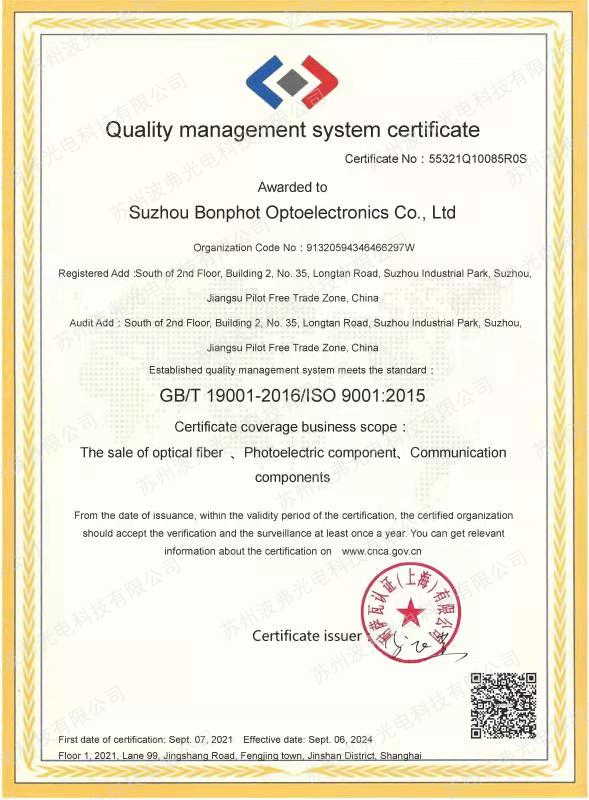 苏州CA888亚洲城光电科技有限公司通过GB/T 19001-2016/ISO 9001:2015质量管理体系认证