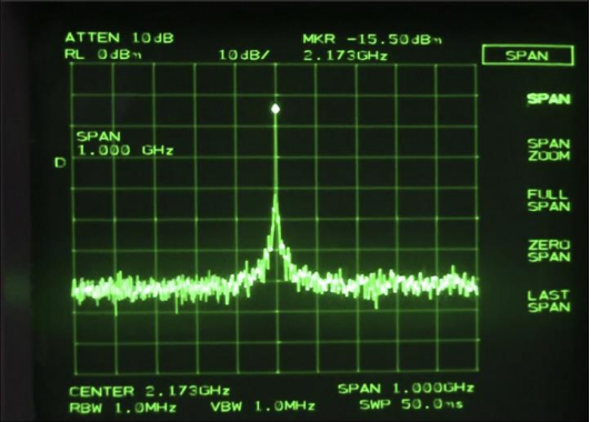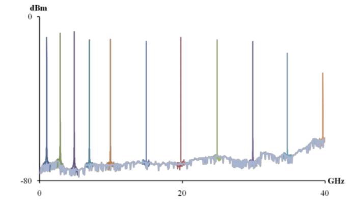 通过光接收器和射频频谱分析仪测量的样本外差信号。