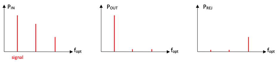 典型响应(IN ➙ OUT):允许传输特定窄带,抑制C或L波段中其他波长。提供从1 -4 GHz多个带宽选择 |
