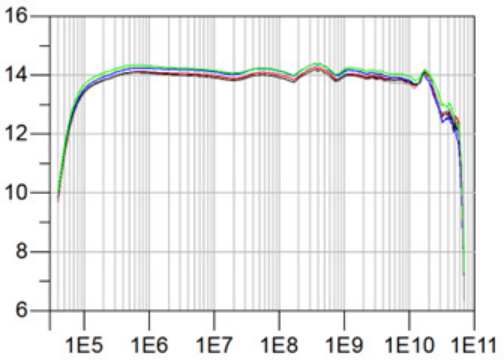 Fig. 7: Typical Gain (dB) vs Linear Frequency (GHz) |