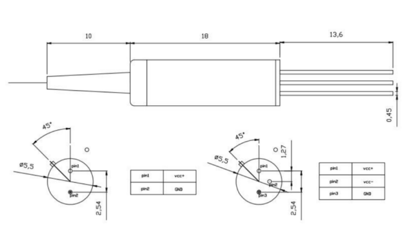 标准封装:Ф5.6XL18 ;紧凑型封装:Ф3.5XL16 |